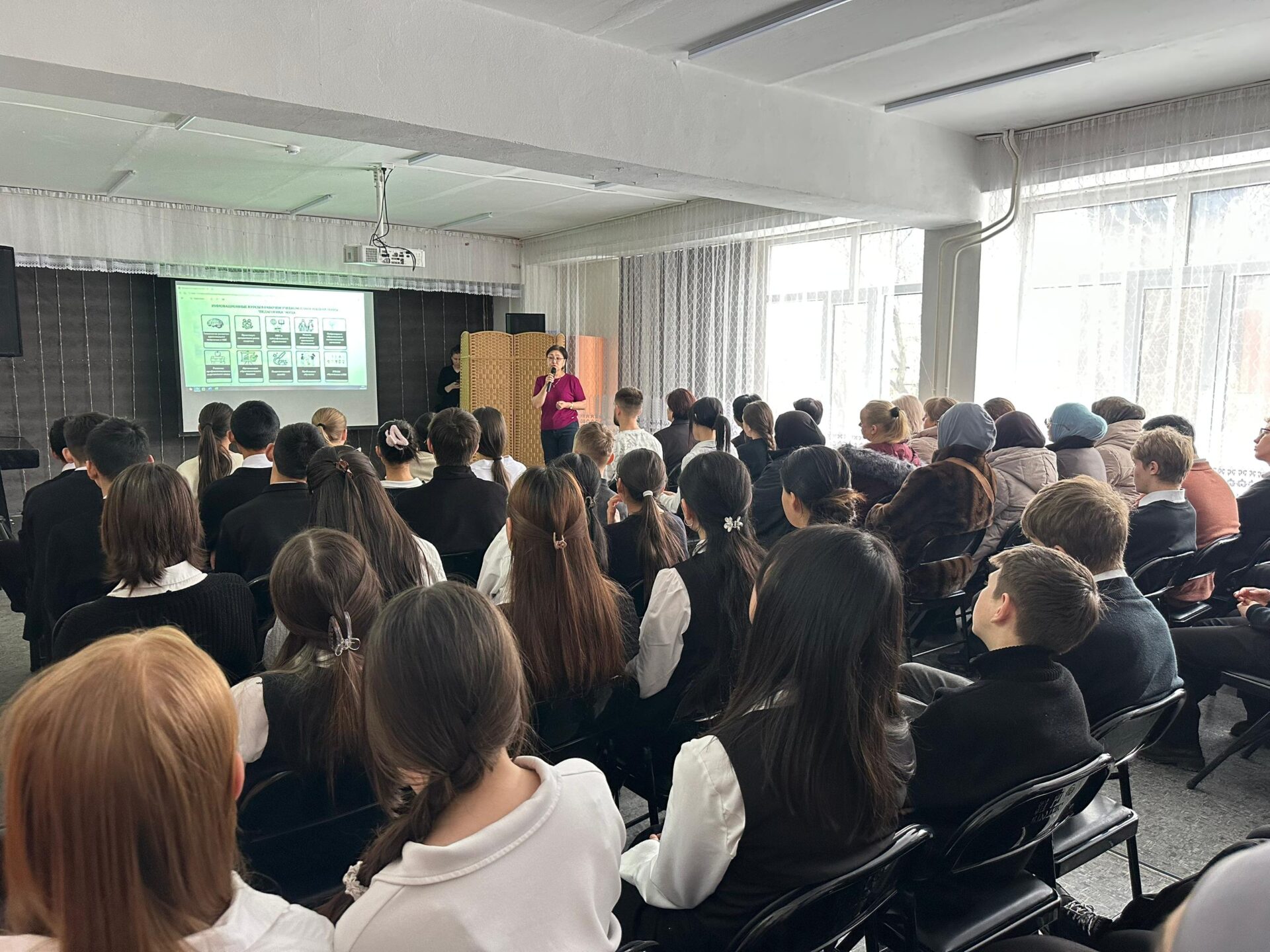 В нашей школе прошла профориентационная встреча с представителями Международного университета Центральной Азии (МУЦА) для учащихся 9–11 классов и их родителей.