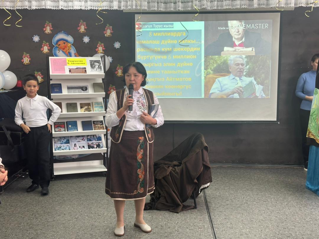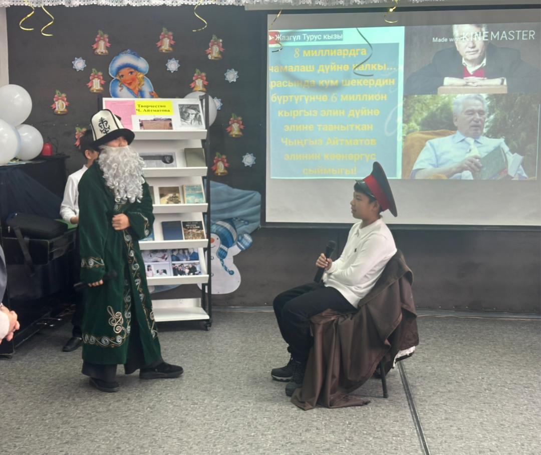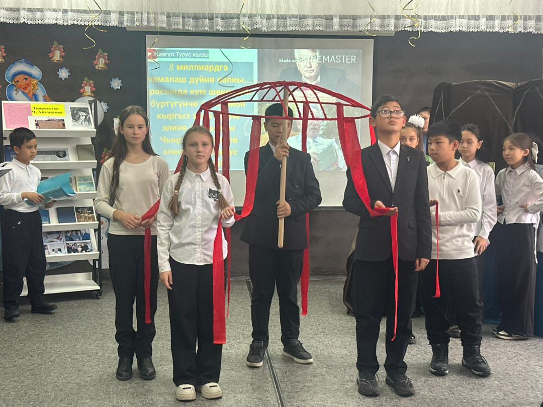 В ходе мероприятия учащиеся познакомились с основными этапами жизни и творчества писателя, его вкладом в развитие литературы и сохранение духовных ценностей народа. Особое место в программе заняла инсценировка отрывка из произведения «Мать олениха», которая помогла глубже прочувствовать философский смысл и нравственные идеи творчества Айтматова. Также прозвучали стихи на кыргызском и русском языках, подчёркивающие значимость писателя для разных поколений и народов.